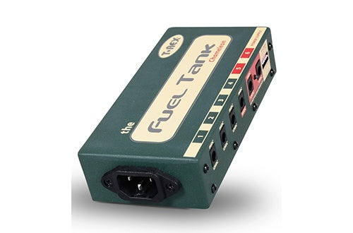 The Fuel Tank Chameleon is only the latest addition to the T-Rex Fuel Tank family. Our original Fuel Tank Classic features 9V DC, 12V DC and 12V AC outlets in three isolated blocks of 500mA each and is ideal for medium-sized pedal boards. It comes with lots of single patch cables and a multiple link cable. The Fuel Tank “Juicy Lucy” powers 5 12V pedals and also offers great extras, like multiple unit linking. The baby of the family – Fuel Tank Junior – is a good choice for a small number of 9V pedals. It offers both current doubling to 240 mA and voltage doubling to 18V.
