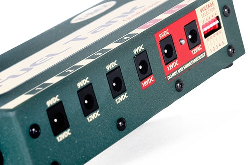Enter the new Fuel Tank Chameleon, the most versatile power supply T-Rex has ever produced. Built for players with a large number of diverse pedals, Fuel Tank Chameleon offers all the advantages of our other Fuel Tank power supplies, plus an unprecedented 4 separate voltage options.
